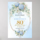 Dusty Blue Hydrangea Boho Floral 80th birthday Poster