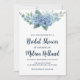 Celebrate your upcoming bridal shower with these elegant and romantic invitations. Featuring a beautiful watercolor painting of dusty blue hydrangeas, accented with delicate greenery and elegant calligraphy, these invitations are perfect for a spring or summer celebration. The soft blue and white colour palette creates a timeless and sophisticated look.