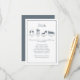 Dusty Blue Hydrangeas is an elegant summer floral arrangement with shades of dusty blue and light sage green leaves. The perfect summer or spring flower for any occasion. A wonderful garden bouquet that represents the simplicity of hydrangeas. Hydrangea flowers are beautiful all year round. This enclosure Details card included a customisable timeline with cocktail glasses, silverware for dinner, a dancing shoe, and an old-fashioned car for Goodnight.