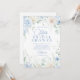 Elegant bridal shower invite featuring dusty blue hydrangeas and white florals.