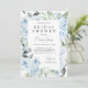 Elegant bridal shower invite featuring dusty blue hydrangeas and green florals.