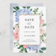 Modern save the date card featuring light blue/ dusty blue watercolor hydrangeas with pastel pink , blush, peach , white roses, peonies, sage eucalyptus leaves, branches and foliage. Muted soft and dreamy romantic shades spring summer watercolor floral designs to match with your themed wedding. Please find more matching designs and variations from my "blissweddingpaperie" store. And feel free to contact me for further customisation or matching items.