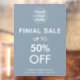 Promote your special offers with our Dusty Blue Final Sale Window Cling. Designed to grab attention, this cling highlights your discount with a stylish, eye-catching design. Featuring clear, bold text and a sophisticated colour scheme, it's perfect for drawing in customers and creating urgency for your final sale events.