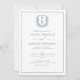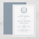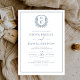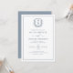 Dusty Blue Leafy Crest Monogram Elegant Wedding Invitation