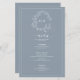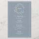 Dusty Blue Leafy Crest Monogram Wedding Menu