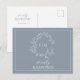 Dusty Blue Leafy Crest Monogram Wedding RSVP Invitation Postcard