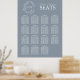We're loving this trendy, modern dusty blue reception seating chart! Simple, elegant, and oh-so-pretty, it features a hand drawn leafy wreath encircling a modern wedding monogram. It is personalised in elegant typography, and accented with hand-lettered calligraphy. Finally, it is trimmed in a delicate frame. Designs to allows for 15 tables of 8, allowing for up to 120 guests. Veiw suite here: https://www.zazzle.com/collections/dusty_blue_leafy_crest_monogram_wedding_invitation-119130199045408312 Contact designer for matching products to complete the suite, OR for colour variations of this design. Thank you sooo much for supporting our small business, we really appreciate it!
