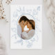 Dusty Blue Line Art Floral Butterfly Photo Thank You Card