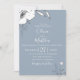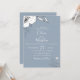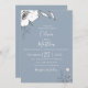 Drawn meadow flowers and foliage in white and soft grey on light dusty blue background , wedding invitation. Customise text, font style, colour and size.
