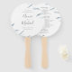Modern chic minimal watercolor botanical foliage greenery design in dusty blue colour, simple and elegant with calligraphy names, great round wedding program fans for modern wedding, rustic wedding, and botanical garden wedding in winter.