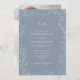 The invitation features an intricate leafy line art motif framing your special invitation details, where you feature the couples' initials in a beautifully crafted monogram. A hand lettered calligraphy font adds an elegant touch that will bring the whole look together, while a favourite engagement photo adds a one-of-a-kind personal touch in a timeless colour combo of dusty blue and bright white.