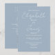 This dusty blue minimalist elegant script wedding invitation can be personalised with your information in chic typography with your wedding website details and your QR code on the reverse. Designed by Thisisnotme©