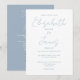 This dusty blue minimalist elegant script wedding invitation can be personalised with your information in chic typography with your wedding website details and your QR code on the reverse. Designed by Thisisnotme©