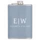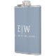 Dusty Blue Minimalist Modern Monogram Elegant Hip Flask