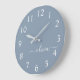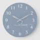 Dusty Blue Minimalist Modern Monogram Elegant Large Clock