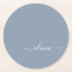 Dusty Blue Minimalist Modern Monogram Elegant Round Paper Coaster