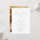 This dusty blue minimalist elegant script wedding invitation can be personalised with your information in chic typography and special photo on the reverse. Designed by Thisisnotme©