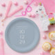 Elegant paper plate featuring your special date and names set in modern typography on a dusty blue background. Designed by Thisisnotme©
