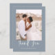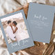 Wedding Thank You Cards that have a photo on the front and back. The Thank you cards contain a modern hand lettered cursive script typography that are elegant, simple and modern to use after you wedding day celebration.