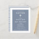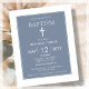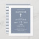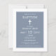 Customisable affordable paper, baptism invitation, featuring a clean white border and dusty blue background, with a simple white cross