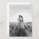 Modern, elegant save the date card features a minimalist dusty blue and white design. Personalise with your wedding details with the easy to edit template featuring an elegant script font and classy serif font. Replace the full photo on the front with your own with the option to remove the black and white filter. Then, replace the back photo with your own and update your wedding website URL. Check out matching items in the “Modern Elegant” collection.