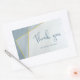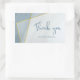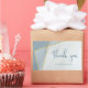 These simple, modern wedding thank you stickers feature a dusty blue colour theme with calligraphic elements, asymmetric gold frame accents, and marble texture appearance - by katz_d_zynes