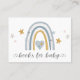 "Dusty Blue Modern Rainbow Books for Baby Enclosure Business Card." Diaper Raffle Enclosure cards for baby boy or gender neutral showers with a pretty modern muted earthy rainbow and stars in dusty blue, steel blue, gold, grey and blush pink. This artwork was painted by internationally licensed artist and designer, Audrey Jeanne Roberts, copyright.