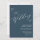 Dusty Blue Modern Script All In One Simple Wedding Invitation