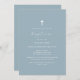 Dusty Blue Modern Script Boho Gold Cross Baptism Invitation