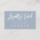 These stylish, modern loyalty cards feature a chic, dusty blue background, with trendy white handwritten script typography and a matching hand drawn heart.