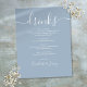 These elegant script dusty blue minimalist drinks menus are perfect for any celebration. Designed by Thisisnotme©