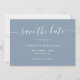 Modern personalised dusty blue wedding save the date cards with a modern script font. Matching items available. Custom requests welcome.