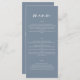 Modern simple elegant natural Dusty blue wedding menu. Modern clean design. Script text.