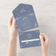 Dusty Blue Monogram and Arrows Wedding All In One Invitation