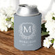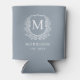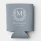 Dusty Blue Monogram Crest Botanical Wedding Can Cooler