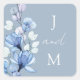 Dusty Blue Monogram Floral Wedding Favour Square Sticker