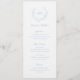 Elegant wedding menu featuring a clean and timeless design with your monogram inside of a wreath crest. Use the template to add each guest name and skip the place cards.