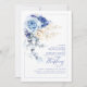 Dusty Blue & Navy Blue Boho Gold Floral Wedding Invitation