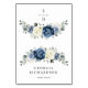 Elegant place card featuring watercolor florals in navy blue and white with greenery accents. Designed with space for each guest’s name and table number, this floral card adds a refined touch to your wedding tablescape. Perfect for classic, romantic, or garden weddings, and coordinates beautifully with the matching blue and white floral invitation suite.