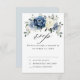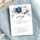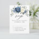 Dusty Blue Navy Champagne Ivory Floral Wedding RSVP Card