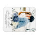 Dusty blue floral save the date magnet featuring elegant bouquet of navy blue, royal blue , white , gold, champagne ivory, blush colour rose , ranunculus flower buds and sage green eucalyptus leaves and elegant watercolor bouquet. Please contact me for any help in customisation or if you need any other product with this design.