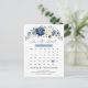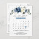 Dusty blue floral calendar save the date postcard featuring elegant bouquet of navy blue, royal blue , white , gold, champagne ivory, blush colour rose , ranunculus flower buds and sage green eucalyptus leaves and elegant watercolor bouquet. Please contact me for any help in customisation or if you need any other product with this design.