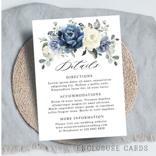 Dusty Blue Navy Champagne Ivory Wedding QR Code All In One Invitation