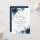 Dusty Blue Navy Dark Slate Floral Pastel Wedding Invitation