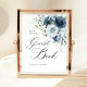 Dusty Blue Navy Floral Guest Book Wedding Table Pedestal Sign