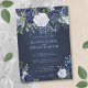 An elegant invitation featuring your wedding details in white lettering surrounded by luscious roses in shades of blue and white on a classy dark navy background. You can add your own special message by going to the customise menu. This invitation is part of a beautiful matching wedding suite that can be fully personalised.