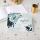 Unique wedding guest book featuring romantic dusty blue and navy flowers and green leaves