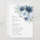 Dusty Blue Navy Watercolor Floral Elegant Wedding Invitation