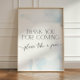 This Thank you for coming sign with dusty clouds is decorated with a watercolor illustration. It is perfect for your "she on cloud nine" themed bridal shower.