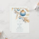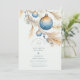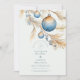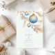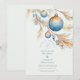A minimal yet elegant design featuring frosted blue Christmas baubles hanging from soft gold pine branches. The vintage winter palette and gentle watercolor details create a refined and romantic holiday wedding mood with a boho twist.